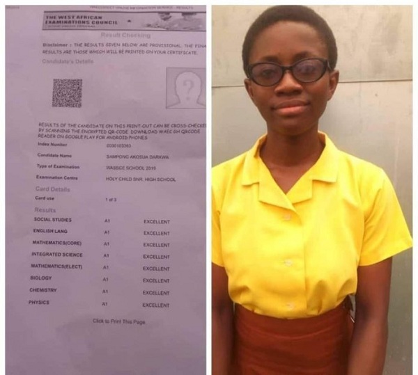 Sampong Akosua Darkwa, a female science student of Holy Child Senior High School (SHS) has passed the 2019 WASSCE Examinations with distinction.