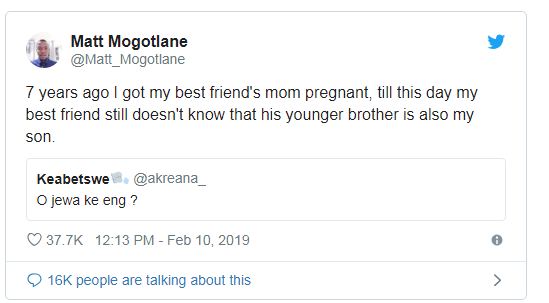 The known on social media Matt Mogotlane made the revelation while reacting and commenting on the viral, ‘O jewa ke eng?’