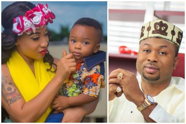 Popular Nigerian actress, Tonto Dikeh has revealed that her son, Andre Dikeh thinks his father, Churchill Olakunle is dead.