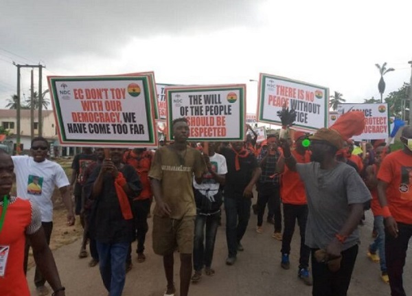 Supporters of the opposition National Democratic Congress(NDC) in Assin South, Assin Central and Assin North Constituencies in the Central Region have converged in Assin Fosu and embarked on a protest march over the 2020 election results.