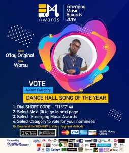 Dancehall singer O’lay Original has gotten 4 nominations in the maiden edition of Emerging Music Awards and hoping to win 2 of the categories.