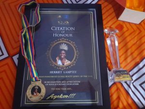 Beauty queen Harriet Lamptey popularly known as Queen Hertie was honoured at Emerging Entertainers Awards Africa.