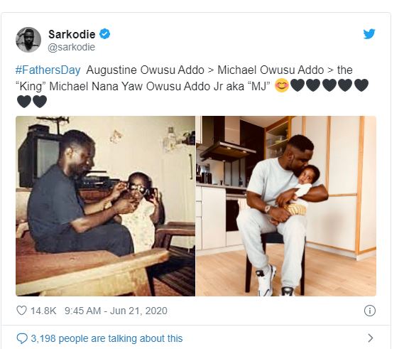 In a post on his Twitter, Sarkodie shared a photo of himself as a child with his father Augustine Owusu Addo.