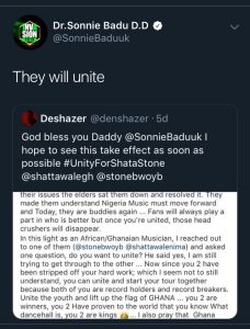 Sonnie Badu was so sure about Shatta Wale and Stonebwoy.