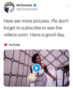 Today, Mr. John Dumelo shared the YouTube link to his white wedding. He wrote, ‘here are more pictures. Please don’t forget to subscribe to see the videos soon.’