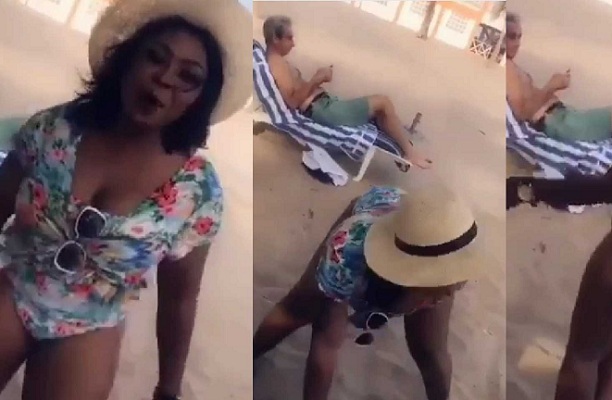 In a recorded video, Afia Schwarzenegger was seen jamming to Medikal’s hit song ‘Wrowroho’ with a lovely bikini on.